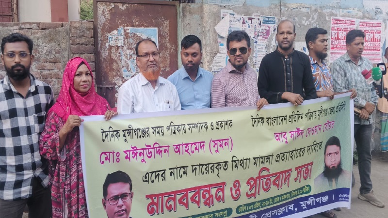 মুন্সীগঞ্জের টঙ্গীবাড়ীতে সাংবাদিকদের বিরুদ্ধে দায়ের করা কথিত মিথ্যা মামলা প্রত্যাহারের দাবিতে এক মানববন্ধন কর্মসূচি অনুষ্ঠিত হয়েছে। টঙ্গীবাড়ী প্রেসক্লাব এর উদ্যোগে আয়োজিত এ কর্মসূচিতে স্থানীয় গণমাধ্যমকর্মীরা