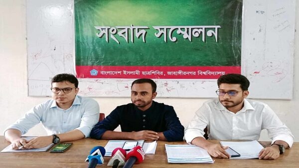 জাবি প্রতিনিধি : অ্যাকাডেমিক মাস্টারপ্ল্যান প্রনয়ণসহ ক্যাম্পাস সংস্কারের ৪১ দফা দাবি উত্থাপন করে বাংলাদেশ ইসলামি ছাত্র শিবির, জাহাঙ্গীরনগর বিশ্ববিদ্যালয় শাখা। রবিবার (৩ নভেম্বর) ছাত্র-শিক্ষক কেন্দ্রে এক সংবাদ সম্মেলনে ৪১ দফা দাবী উত্থাপন করে তারা। এসময় আন্দোলনে আহত বিপ্লবীদের স্বাস্থ্যসেবা ও পুনর্বাসন, হামলাকারীদের দ্রুত বিচার, বিগত দিনের দুর্নীতির শ্বেতপত্র প্রকাশসহ মোট ৪১ দফা দাবি উত্থাপন করে তারা।