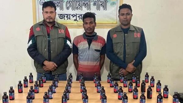 শাহাদুল ইসলাম সাজু, জয়পুরহাট: জয়পুরহাট জেলার সদর থানাধীন ধলাহার ইউনিয়নের উত্তর শেখপুর গ্রাম এলাকায় সোমবার ভোরে বিশেষ অভিযান চালিয়ে ৫০ বোতল ফেন্সিডিলসহ এক মাদক ব্যবসায়ীকে গ্রেফতার করেছে জেলা গোয়েন্দা পুলিশের বিস্তারিত