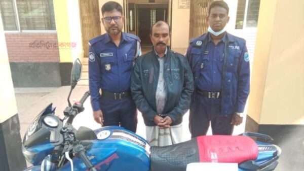 নাজমুল হোসেন, গোয়ালন্দ (রাজবাড়ী): রাজবাড়ীর গোয়ালন্দ উপজেলার দৌলতদিয়া হাচেন মোল্লার পাড়ায় পুলিশি অভিযানে চোরাই মোটরসাইকেল সহ গাজী হাওলাদার (৭৫) নামে ০১জনকে আটক করেছে পুলিশ। শুক্রবার (২৭ ডিসেম্বর) এক প্রেস নোটে বিস্তারিত