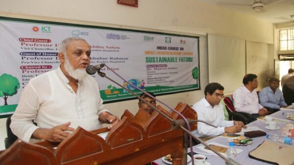 ইবি প্রতিনিধি: ইসলামী বিশ্ববিদ্যালয়ের (ইবি)‘ইমপ্যাক্ট এন্ট্রাপ্রেনিউরশিপ এনেবলিং সাসটেইনেবল ফিউচার’ শীর্ষক মাইক্রোকোর্সের অনুষ্ঠানে প্রথম সেশনে প্রধান অতিথির বক্তব্যে ভিসি অধ্যাপক ড. শেখ আবদুস সালাম বলেন, “স্বপ্নের স্মার্ট বাংলাদেশ প্রতিষ্ঠার লক্ষ্যে দেশের বিস্তারিত