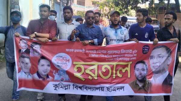 কুমিল্লা বিশ্ববিদ্যালয় প্রতিনিধি : নির্বাচন কমিশনের ঘোষিত অবৈধ তফসিলের প্রতিবাদ এবং বিএনপির একদফা দাবী আদায়ের লক্ষ্যে গত রবিবার থেকে দেওয়া ৪৮ ঘণ্টার হরতাল সমর্থনে বিক্ষোভ মিছিল করেছে কুমিল্লা বিশ্ববিদ্যালয় (কুবি) বিস্তারিত