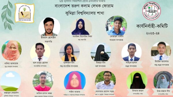 কুবি প্রতিনিধি : বাংলাদেশ তরুণ কলাম লেখক ফোরাম, কুমিল্লা বিশ্ববিদ্যালয় (কুবি) শাখার কার্যনির্বাহী কমিটি-২০২৩-২৪ কার্যবর্ষের জন্য ১৫ সদস্যবিশিষ্ট নতুন পূর্নাঙ্গ কমিটি ঘোষণা করা হয়েছে। গত রবিবার (৩ সেপ্টেম্বর) বিকালে তরুণ বিস্তারিত