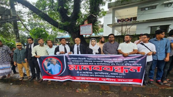 মনসুর আলম মুন্না ( কক্সবাজার ): আমার দেশ পত্রিকার সম্পাদক মাহমুদুর রহমানের মুক্তির দাবিতে কক্সবাজার সুশীল সমাজের উদ্যোগে মানববন্ধন অনুষ্ঠিত হয়েছে। বৃহস্পতিবার সকালে কক্সবাজার জেলা প্রশাসকের কার্যালয়ের সামনে সুশীল সমাজের বিস্তারিত
