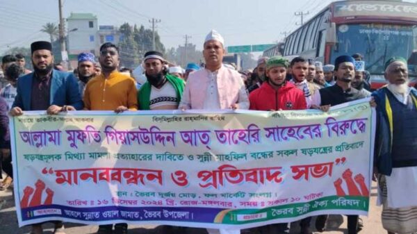 মোঃ নাঈমুজ্জামান নাঈম, নিজস্ব প্রতিবেদক : কিশোরগঞ্জে ভৈরবে আলোচিত সমালোচিত ইসলামী বক্তা গিয়াস উদ্দিন আত-তাহেরির বিরুদ্ধে করা মামলা প্রত্যাহারের দাবিতে বিক্ষোভ ও মানববন্ধন করেছে আহলে সুন্নাত ওয়াল জামাত ও তার ভক্তবৃন্দ বিস্তারিত