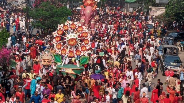 বর্ণাঢ্য আয়োজনের মধ্য দিয়ে বাংলা নববর্ষ-১৪৩১ উদযাপিত হয়েছে। এর আকর্ষণের কেন্দ্রবিন্দুতে ছিল ঢাকা বিশ্ববিদ্যালয়ের (ঢাবি) চারুকলার মঙ্গল শোভাযাত্রা। জগতের অন্ধকার দূর করার প্রত্যয়ে ‘আমরা তো তিমিরবিনাশী’ স্লোগানকে সামনে রেখে বর্ষবরণ বিস্তারিত