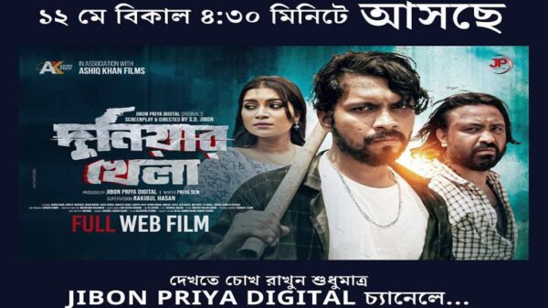 বিনোদন ডেস্ক: প্রিমিয়ার শোর মাধ্যমে মুক্তি পাওয়া তরুণ নির্মাতা এস.ডি. জীবন’র ওয়েব ফিল্ম ‘দুনিয়ার খেলা’ অনলাইনে আসছে আগামীকাল। ১২ মে রবিবার বিকাল ৪:৩০ মিনিটে “জীবন প্রিয়া ডিজিটাল” ইউটিউব চ্যানেলে প্রকাশিত বিস্তারিত