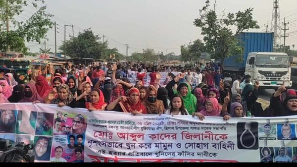 নিজস্ব প্রতিবাদক :ময়মনসিংহের ত্রিশাল উপজেলার মোক্ষপুর ইউনিয়নের খাগাটি জামতলি এলাকার আব্দুল কাদের জিলানীকে হত্যার প্রতিবাদে দ্রুত বিচার ও জড়িতদের ফাঁসির দাবিতে মানববন্ধন ও মহাসড়ক অবরোধ করেছে এলাকাবাসী। আজ (১৫ এপ্রিল) বিস্তারিত