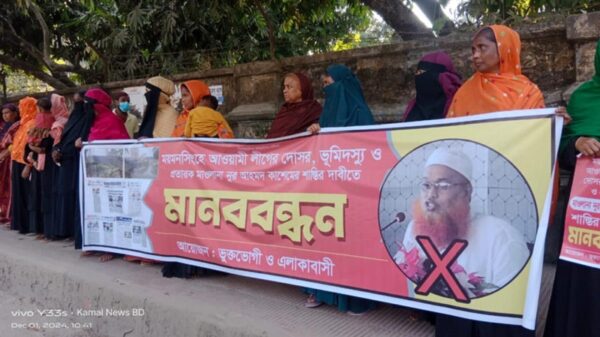 রেজাউল করিম রেজা,ময়মনসিংহ : নূর আহমদ কাশেম গং কর্তৃক মিথ্যা মামলা প্রত্যাহার দাবিতে ময়মনসিংহে মানববন্ধন করেছে ভুক্তভোগীরা খাগডহর মদিনা নগর এলাকাবাসী। গত রবিবার (০১ ডিসেম্বর) সকালে ভুক্তভোগী ও এলাকাবাসীর উদ্যোগে বিস্তারিত