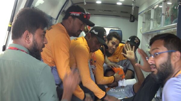 অনলাইন ডেস্ক: মাথায় বলের আঘাত লেগে মারাত্মক আহত হয়েছেন কুমিল্লা ভিক্টোরিয়ান্সের (Comilla Victorians) পেসার মোস্তাফিজুর রহমান। চট্টগ্রামের জহুর আহমেদ চৌধুরী স্টেডিয়ামে আজ সকালে অনুশীলনের সময় এ ঘটনা ঘটে। রক্তাক্ত অবস্থায় বিস্তারিত