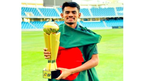 মো.সফিকুল আলম দোলন,পঞ্চগড়: যুব এশিয়া কাপে চ্যাম্পিয়ন বাংলাদেশ চ্যাম্পিয়ন দলের অন্যতম সদস্য চৌধুরি মোহাম্মদ রিজওয়ান । ফাইনাল ম্যাচে ব্যাট হাতে তিনি দিয়েছেন নির্ভরতার প্রতিদান ।সংযুক্ত আরব আমিরাতের বিশ্বকাপ ফাইনালে রিজওয়ানের বিস্তারিত