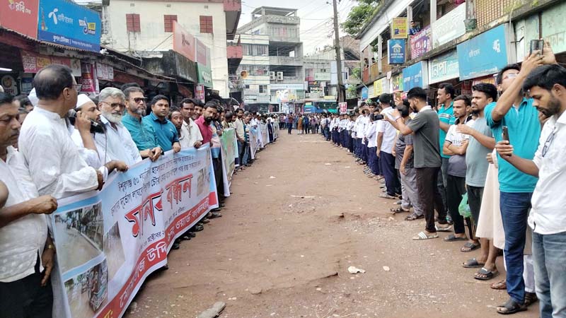 মানববন্ধনে উপজেলার বিভিন্ন শ্রেণি-পেশার মানুষ, ব্যবসায়ী, শ্রমিক, শিক্ষার্থী, পরিবহন শ্রমিক ও রাজনৈতিক নেতৃবৃন্দ একত্রিত হয়ে রাস্তা সংস্কারের জোর দাবি জানান।