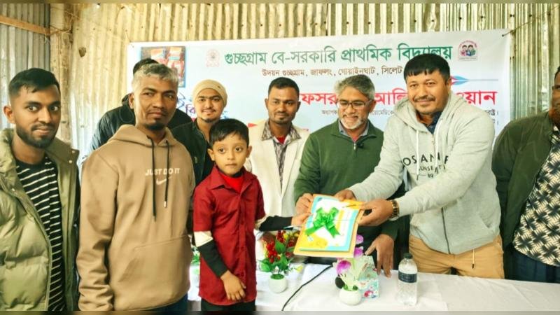 সিলেটের গোয়াইনঘাট উপজেলার জাফলংয়ে গুচ্ছগ্রাম বেসরকারি প্রাথমিক বিদ্যালয়ে বই বিতরণ, কৃতি শিক্ষার্থী সংবর্ধনা ও অভিভাবক সমাবেশ অনুষ্ঠিত হয়েছে।