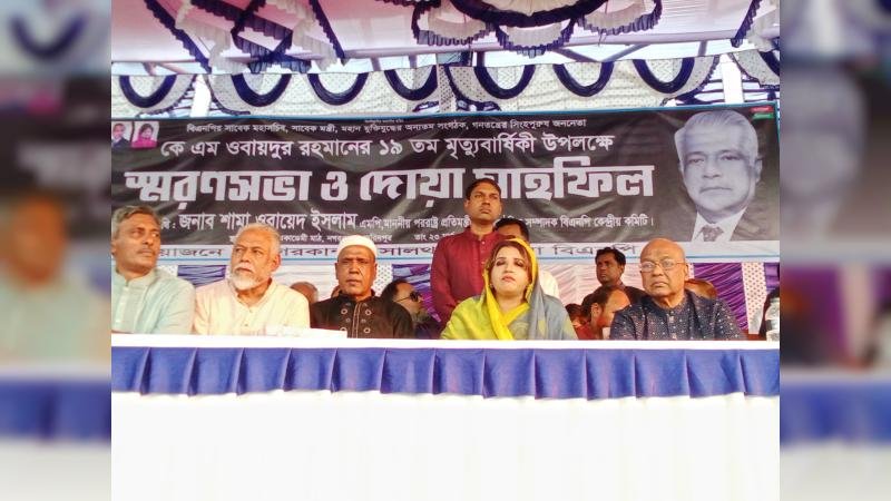 নগরকান্দা উপজেলার এম এন একাডেমির মাঠে মরহুম কে এম ওবায়দুর রহমানের স্মরণসভা ও দোয়া মাহফিল অনুষ্ঠিত হয়েছে।